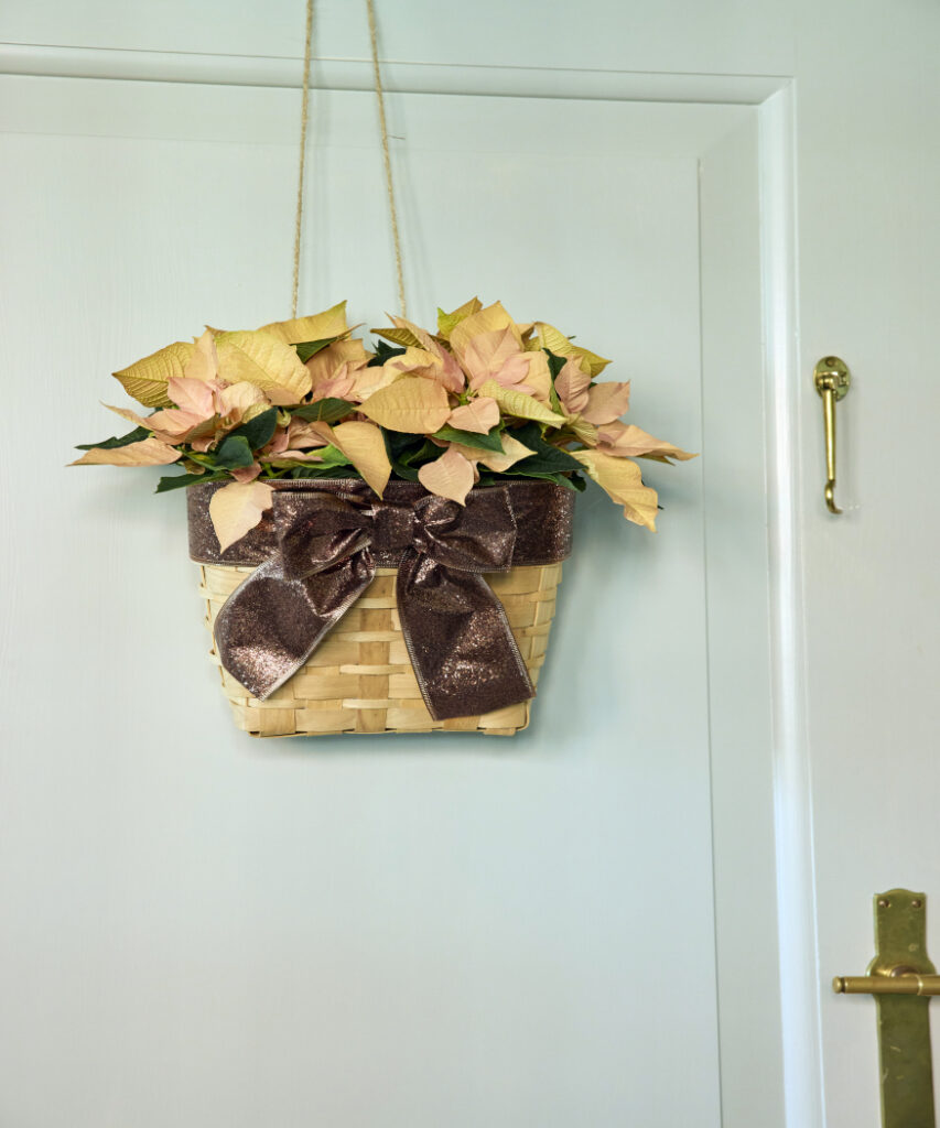 Ένα αλεξανδρινό μπορεί επίσης να αποτελέσει ένα εντυπωσιακό γιορτινό διακοσμητικό για τον χώρο της εισόδου, όταν τοποθετηθεί κρεμαστά σε ένα επίπεδο καλάθι από πλεκτό ξύλο.