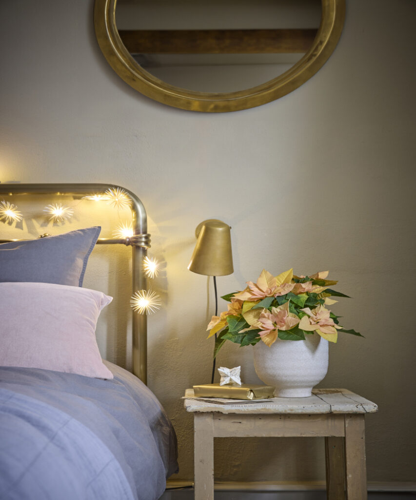Καθώς πλησιάζουν τα Χριστούγεννα, ακόμη και το υπνοδωμάτιο μπορεί να αποκτήσει γιορτινή ατμόσφαιρα – με ένα διακοσμημένο μίνι χριστουγεννιάτικο δέντρο, λαμπάκια με ήπιο φωτισμό που τρεμοπαίζουν και δώρα τυλιγμένα με αγάπη.