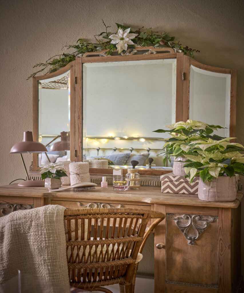 Σε φλογερό κόκκινο, απαλό βερικοκί ή ζωηρό ροζ, αυτά τα εντυπωσιακά χειμερινά λουλούδια δημιουργούν μια ζωντανή ατμόσφαιρα και συνδυάζονται ιδανικά με εξωτικά φυτά όπως οι φοίνικες ή οι κάκτοι. Έντονα χρώματα, φυσικά υλικά και εκκεντρικά μοτίβα συνθέτουν ένα στυλ εμπνευσμένο από τον μεξικάνικο τρόπο ζωής – γεμάτο ζωντάνια και μεγάλη ευελιξία.