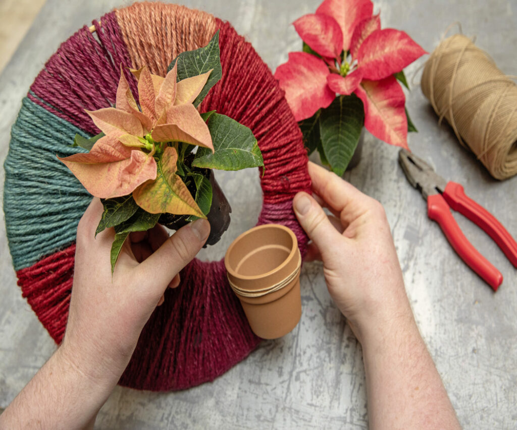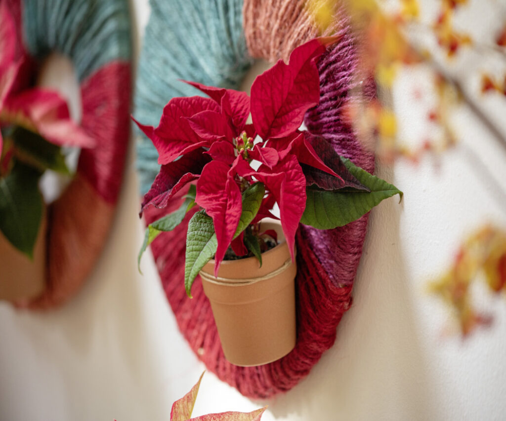 Αυτές οι χειροποίητες διακοσμήσεις τοίχου στα αριστερά θυμίζουν παραδοσιακά σομπρέρος, με τα έντονα χρώματα και τα κυκλικά τους σχήματα. Πέρα από το ότι τραβούν το βλέμμα ως διακοσμητικά στοιχεία, οι υφασμάτινες αυτές κατασκευές λειτουργούν και ως βάσεις για μίνι αλεξανδρινά, δημιουργώντας ζωηρές, πολύχρωμες πινελιές στον χώρο — μια δημιουργική DIY κατασκευή που συνδυάζει ιδανικά φαντασία, παράδοση και χριστουγεννιάτικο πνεύμα.