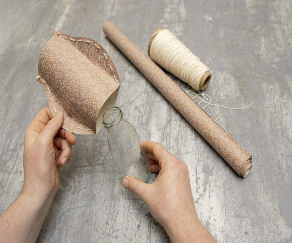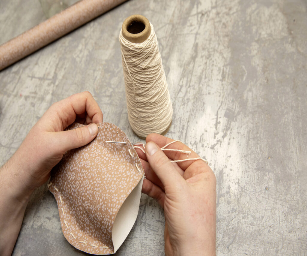 3. Varrjuk vagy ragasszuk össze a széleket, a tetejét és alját hagyjuk nyitva.