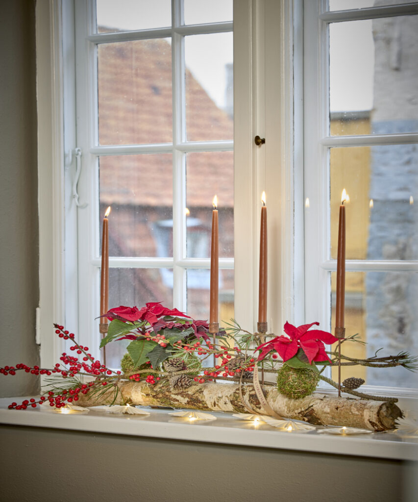 Sul davanzale, la composizione porta un’atmosfera festiva, naturale e accogliente.