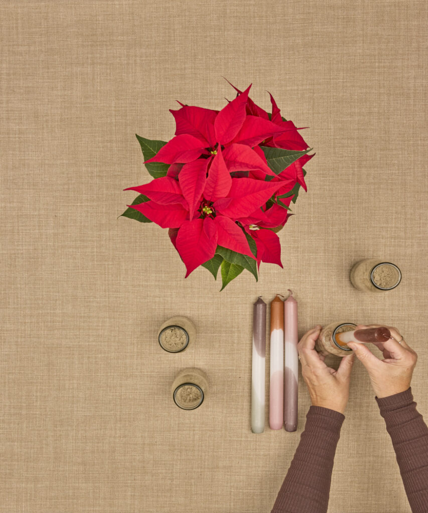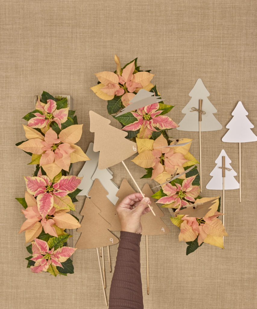Questo sistema rende le mini Stelle di Natale perfette per realizzare composizioni creative per l’Avvento o per addobbi natalizi originali e “vivi”, come mostrano le seguenti idee.