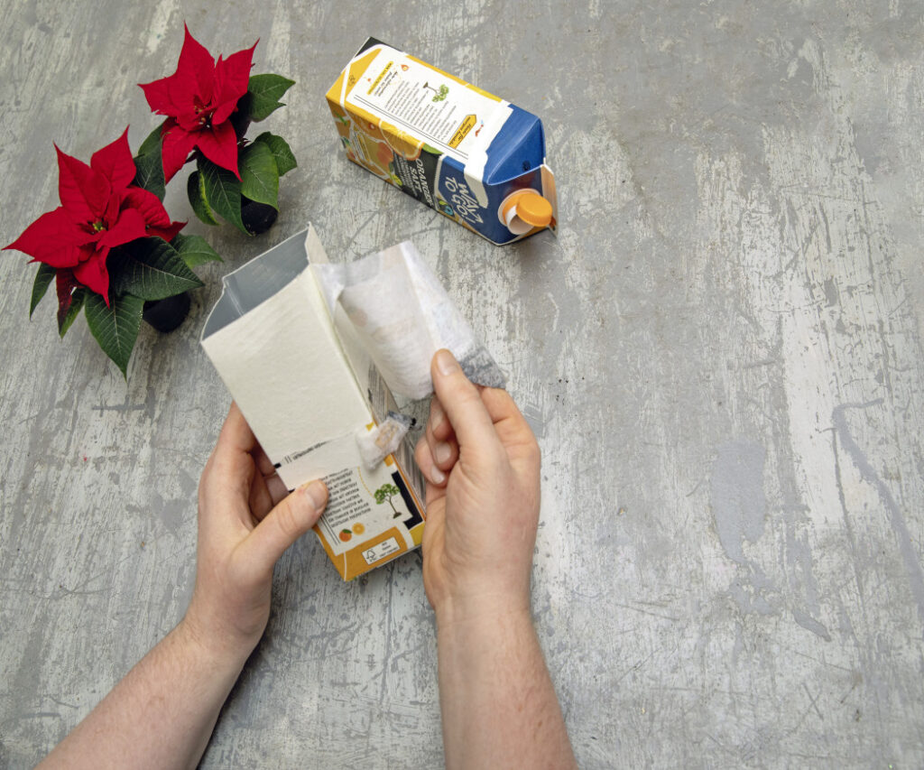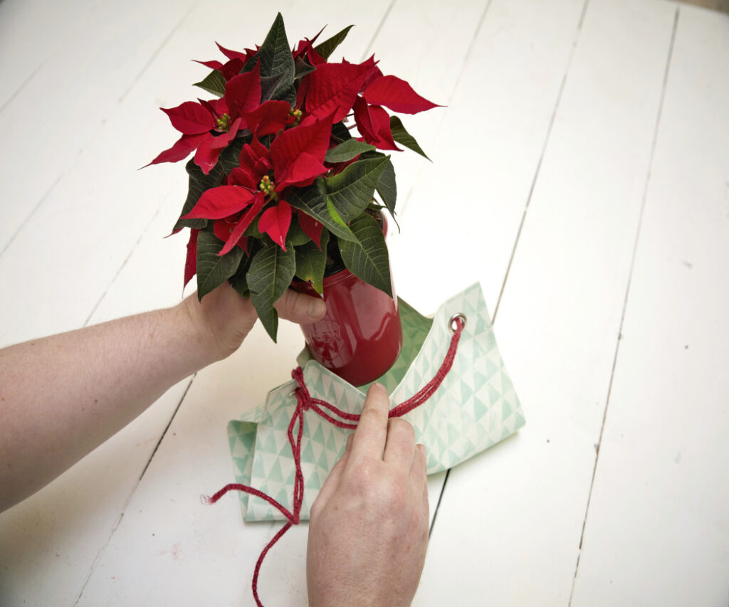 - Sistema la Stella di Natale (nel suo coprivaso) all’interno del sacchetto artigianale. In questo modo l’incarto resta pulito e protetto da umidità o terra.
