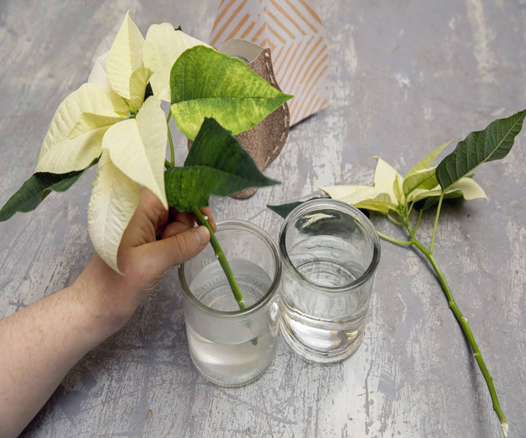 Krok 5: Odrežte vianočné ruže. Konce stoniek ponorte na niekoľko sekúnd do horúcej vody s teplotou približne 60 °C, následne ich hneď ponorte do studenej vody. Tento postup udrží rezané vianočné ruže vo váze čerstvé až dva týždne, ak im budete pravidelne dopĺňať čerstvú vodu.